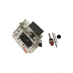 - Drills 20mm minifix (cam) holes with adjustable drill bit with stop collar.