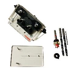 - Drills 15mm minifix (cam) holes with self-centering drilling bits.